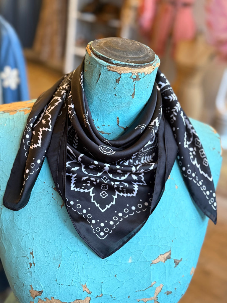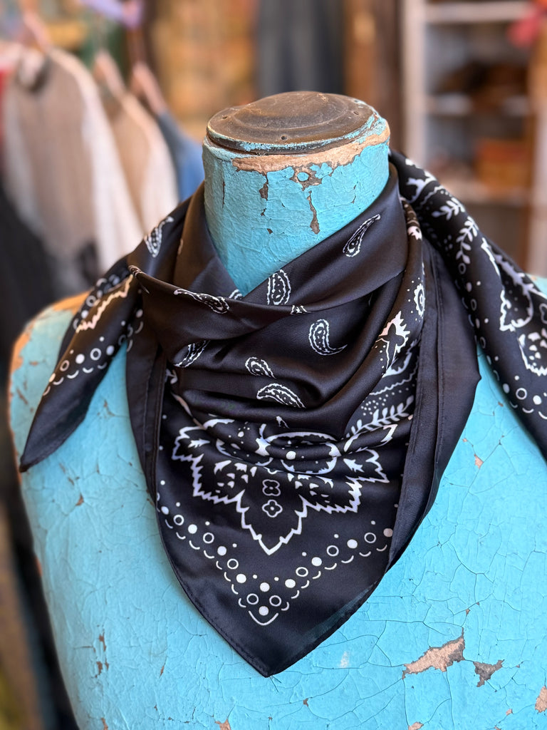 A true classic, this black and white paisley wild rag channels traditional bandana style with a crisp, high-contrast finish. An easy staple that never goes out of style.