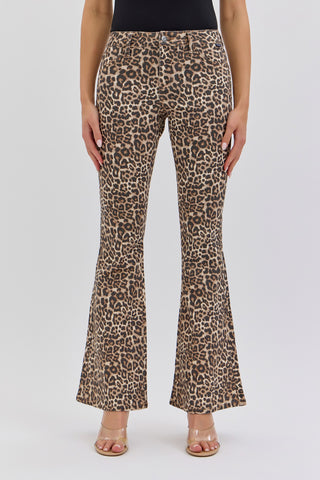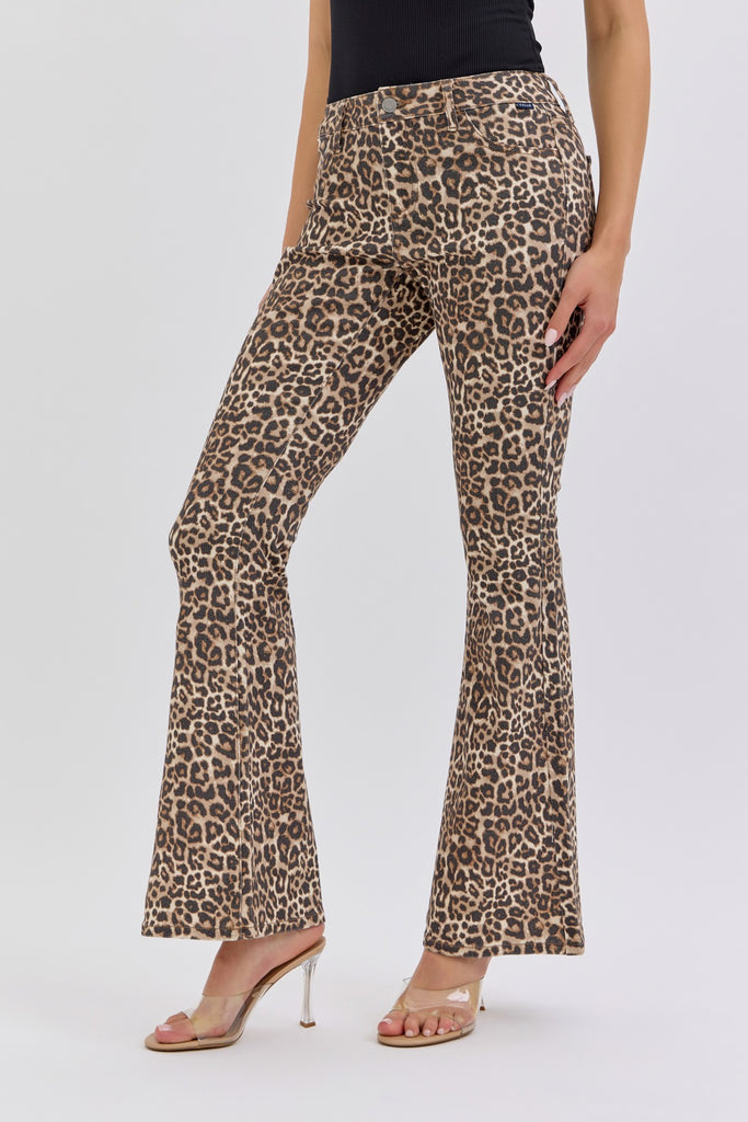 These Leopard Mid Rise Flare jeans combine on-trend leopard print with a flattering mid-rise fit and comfortable stretch fabric. The boot cut flare style adds a stylish touch that balances modern flair with versatility, making them perfect for day-to-night wear. Designed to move with you, these jeans provide comfort without compromising on fashion, helping you feel confident and supported in every step.