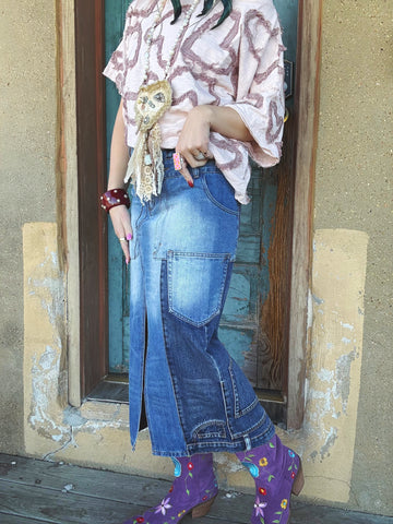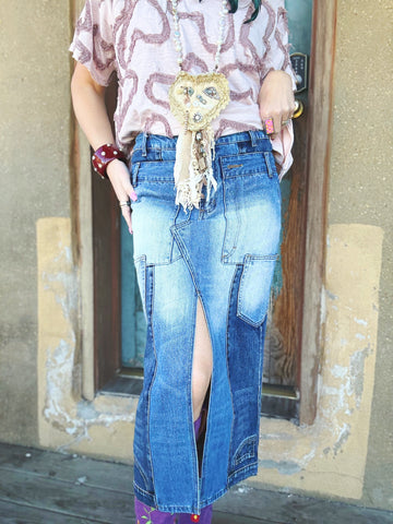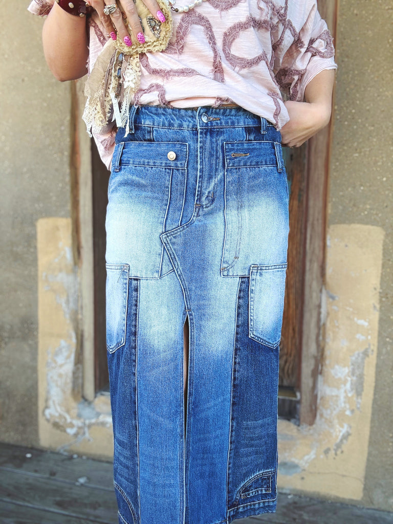 The Wanderline Utility Denim Skirt is that effortless statement piece your closet’s been waiting for. Designed with a relaxed, true-to-size fit and a mineral-washed finish, this skirt has a perfectly worn-in look that feels both modern and timeless. The panel-style seaming and utility-inspired details give it an artsy edge, while the longer length keeps it versatile and easy to style year-round.
