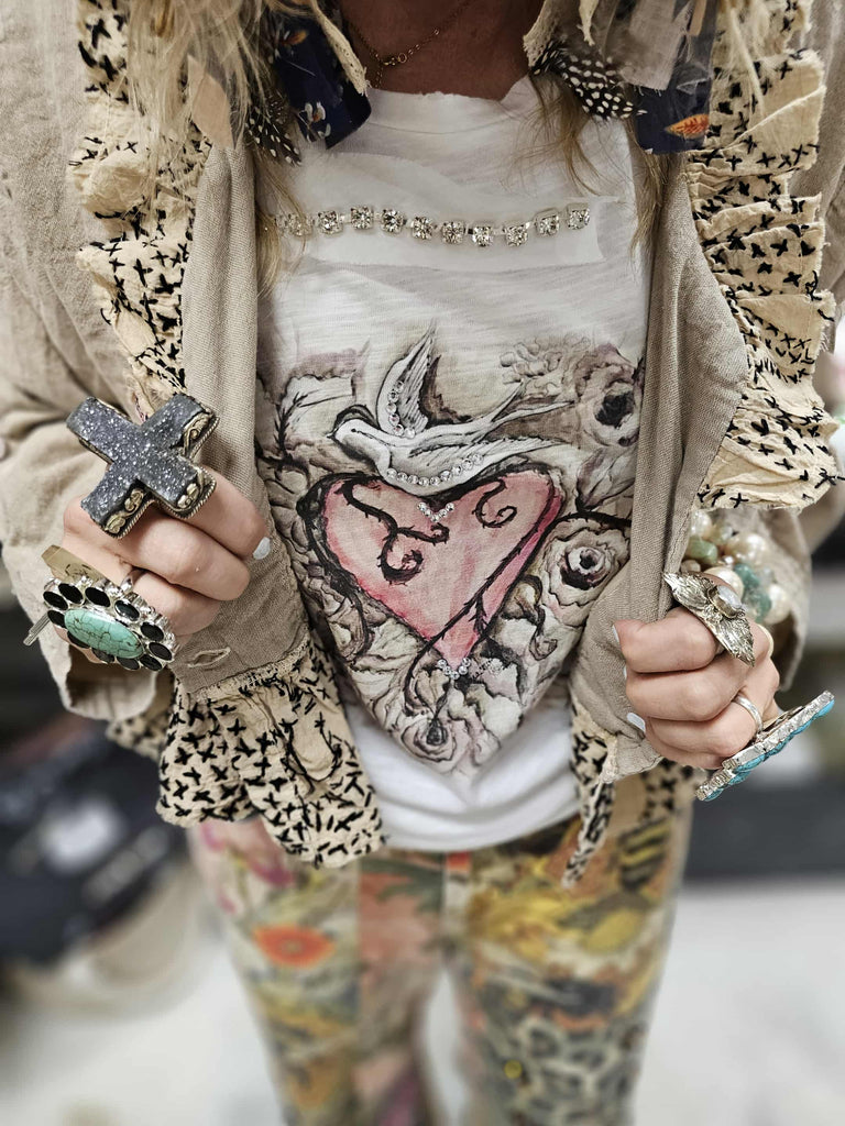Experience wearable art with Lisa's original "Whispering Dove Heart" longsleeve tee. Featuring a delicate heart and bird design on crisp white cotton, this A-line fit shirt combines comfort with artistic expression. Crafted from high-quality cotton, it offers a soft feel and lasting durability, making it perfect for everyday wear while showcasing a unique, meaningful design.