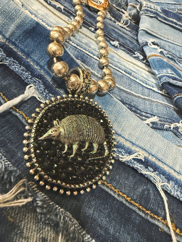 This ball chain necklace features a black crystal armadillo pendant—bold, unexpected, and full of personality. A perfect statement piece that still feels easy to wear.