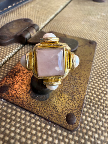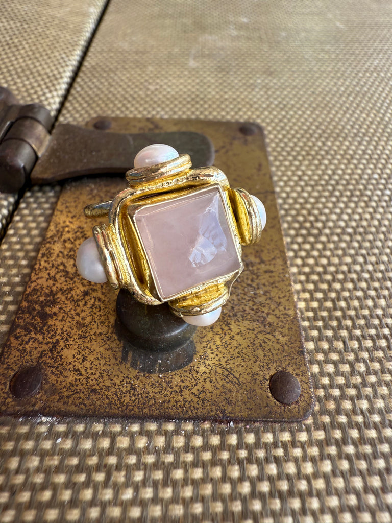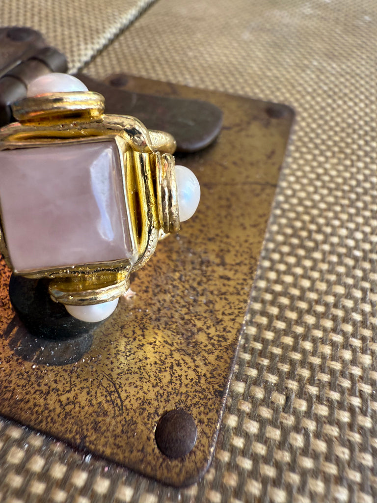 Jennifer Thames Square Rose Quartz + Pearl Ring