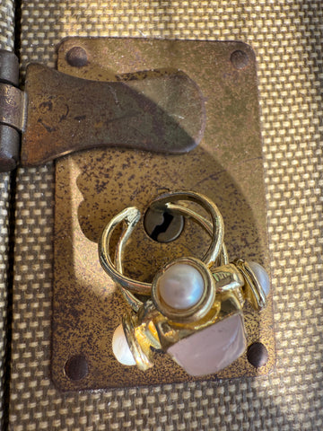 Romantic and chic, the Square Rose Quartz + Pearl Ring pairs a soft rose quartz stone with surrounding freshwater pearls. Adjustable for the perfect fit, this ring blends boho sweetness with glam detail.