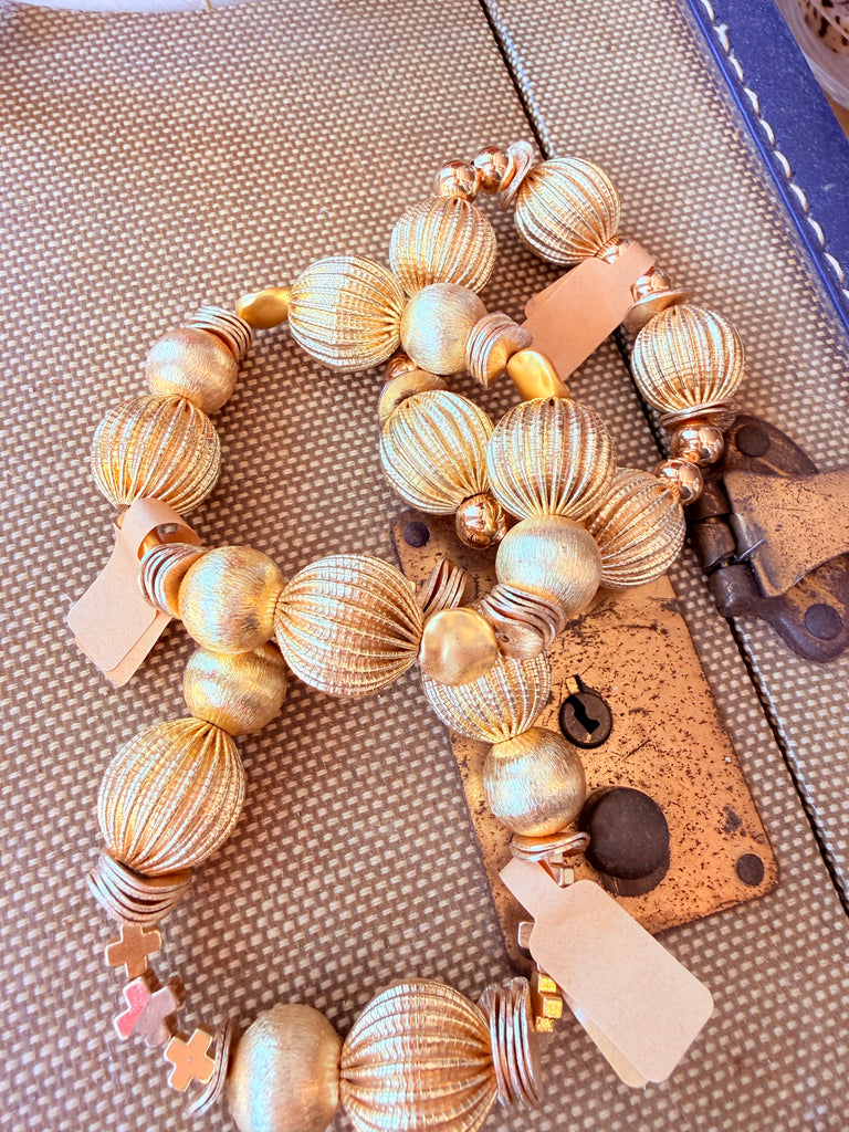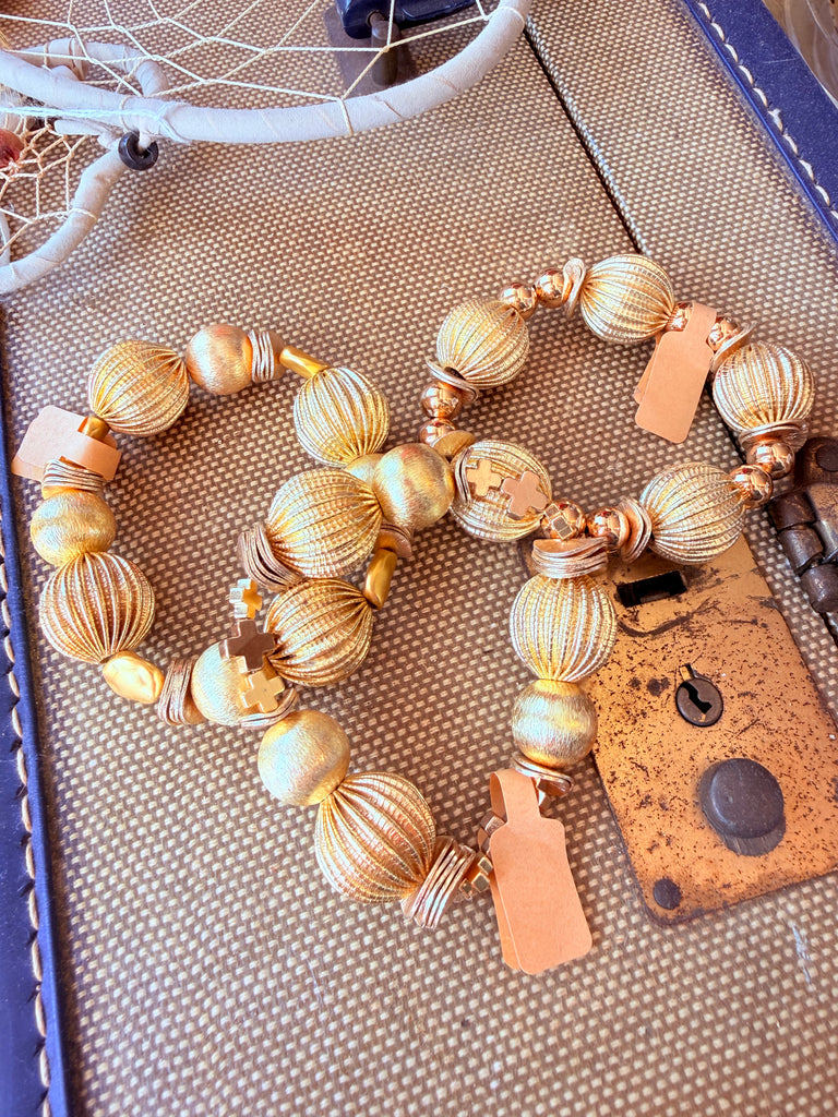 Hand-strung gold beads form the ultimate everyday stretch bracelet—perfect for stacking or shining solo. Handmade in Mississippi. Lead & nickel free.