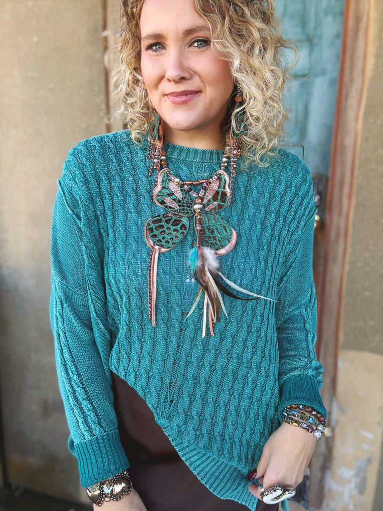 Meet your new throw-on-and-go favorite! Our Mineral Washed Cable Knit Sweater in Faded Teal brings cozy texture and effortless charm to any outfit.