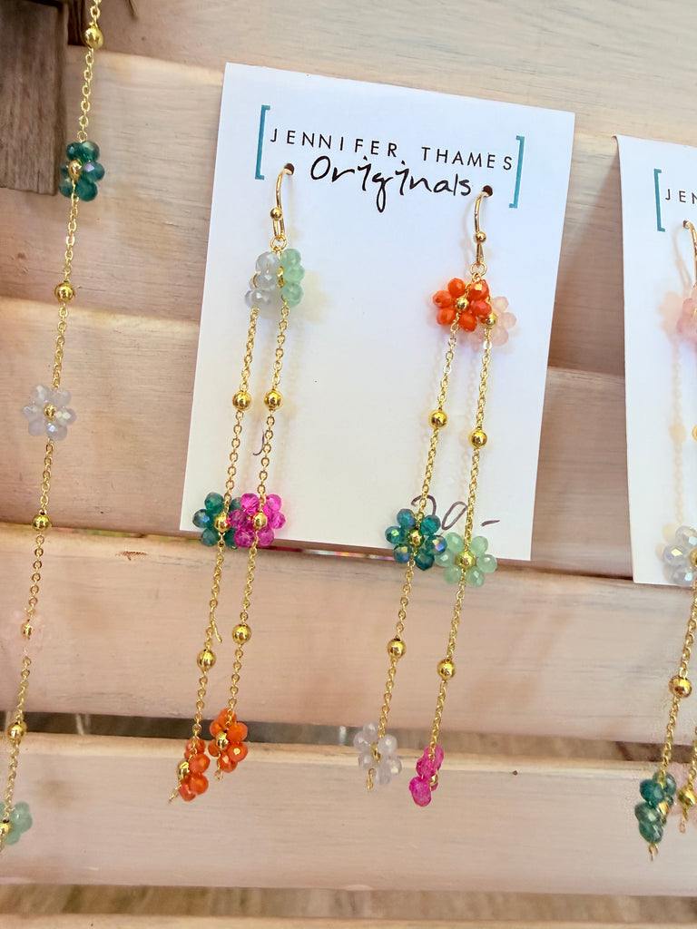 Tiny multicolor beaded flowers bloom in this dainty design—playful, feminine, and full of joyful color. Handmade in Mississippi. Lead & nickel free.