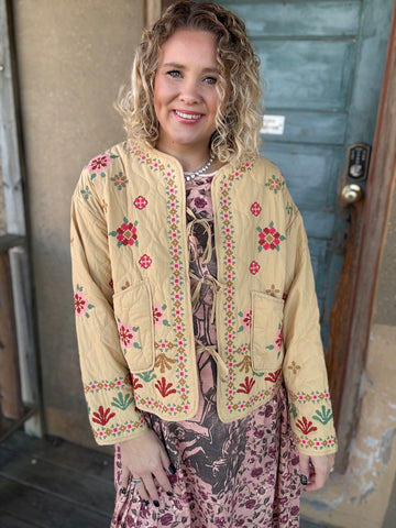 🌼 Prairie Bloom Khaki Embroidered Jacket