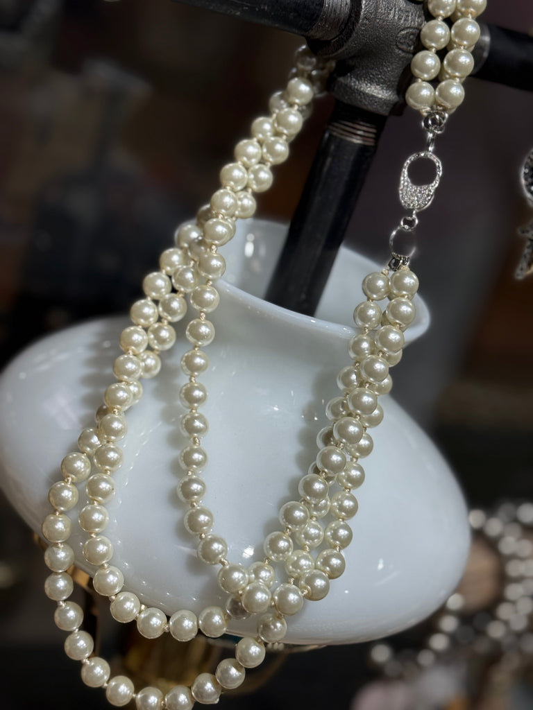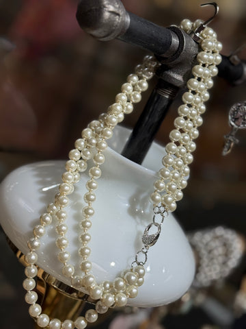 Glamour Trio Pearl Necklace - 2 color clasp options