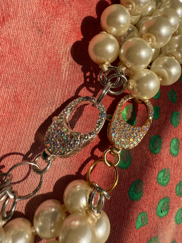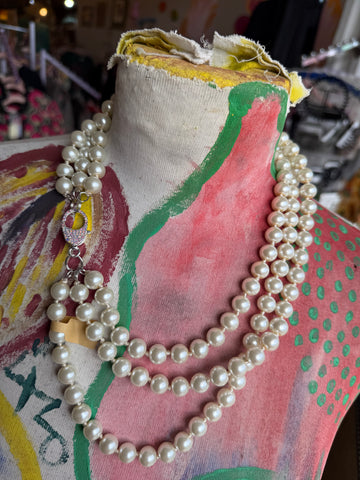 Classic elegance meets modern sparkle in this triple-strand pearl necklace, finished with a dazzling bling lobster clasp. Perfect for dressing up any outfit with timeless sophistication and a touch of luxe shine.