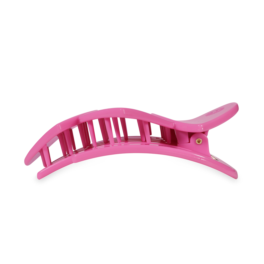 Lay flat and relax with the new TELETIES Pink Heart to Heart Large Flat Hair Clip. This hair clip is designed to allow you to lay back flat, do yoga, or sit comfortably in a seat with a headrest, and it is made with the same material that is nearly unbreakable.