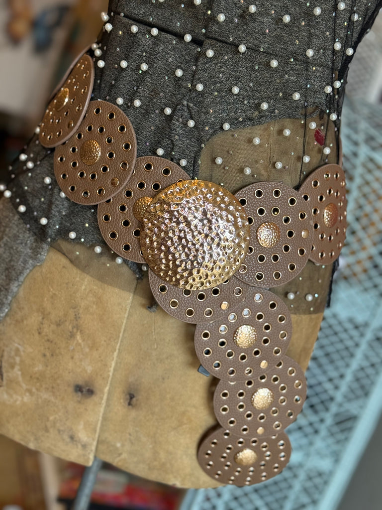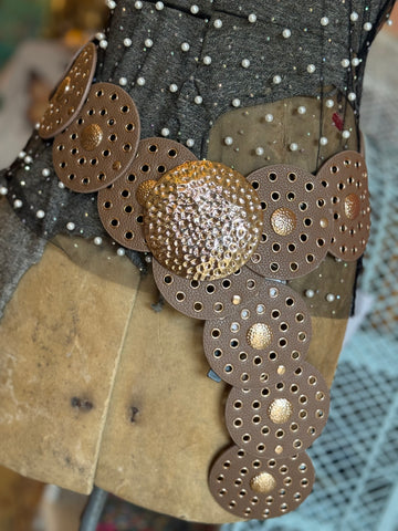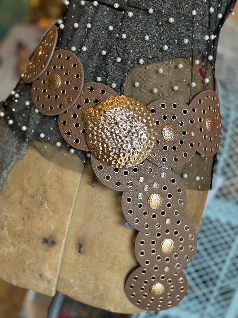 Classic meets chic with our Brown Concho Belt, finished with rose gold hardware for a touch of feminine shine. The circle design makes it a standout piece while still staying neutral enough to wear every day. Sized to fit Small through XL, it’s the perfect blend of rustic charm and modern style.