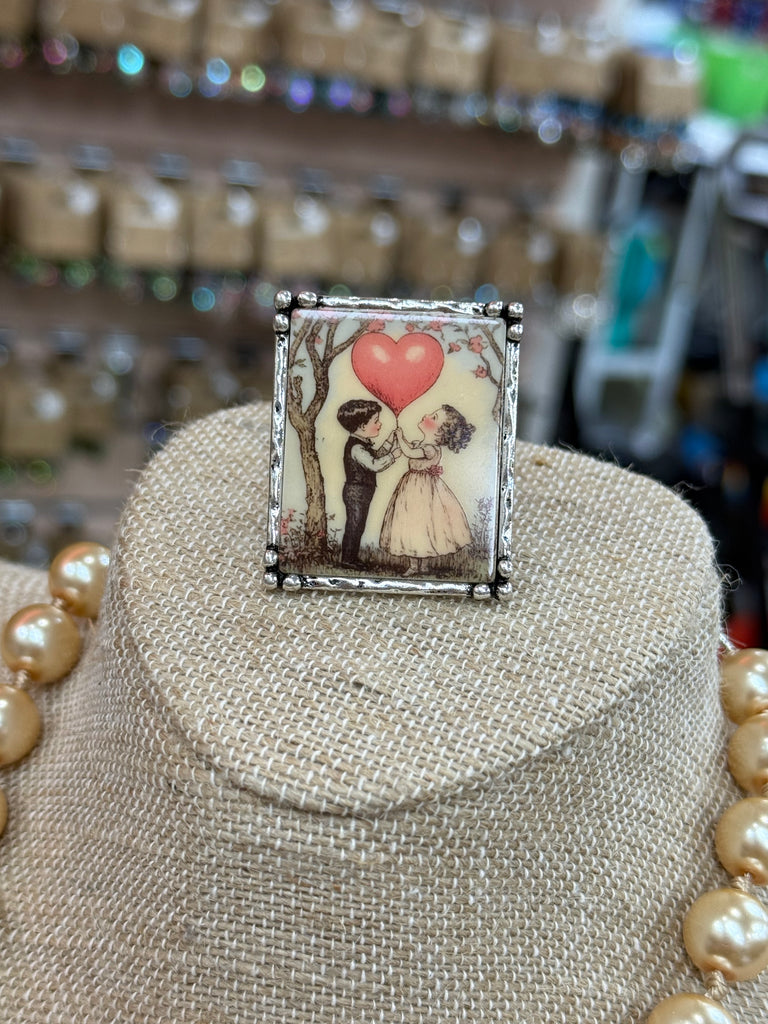 Charming vintage girl holding a heart balloon. Whimsical, nostalgic, and perfect for Valentine’s Day.