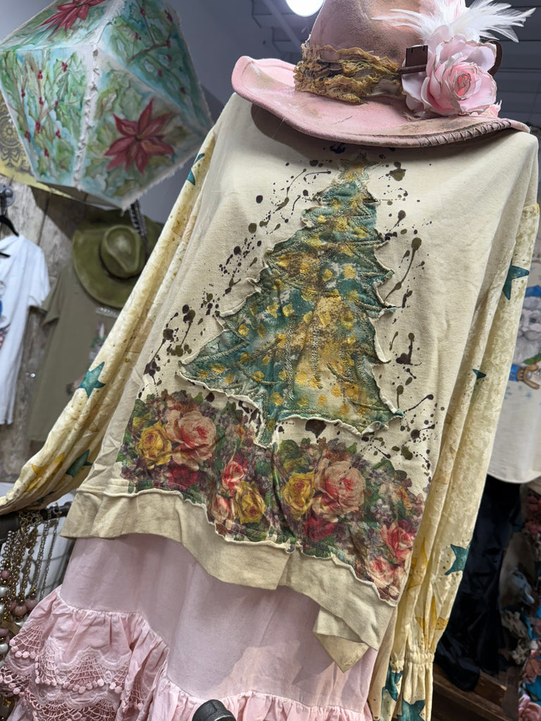 Celebrate the season in cozy, handcrafted style with our Rosie Christmas Shirt from A Rare Bird. This one-size piece (fits sizes 6-18) features a stunning, artistic Christmas tree design that’s both festive and unique. The standout velvet sleeves are adorned with delicate stars, adding a magical touch to your holiday wardrobe. Perfect for festive gatherings or cozy winter days — wear a little handmade joy this season!