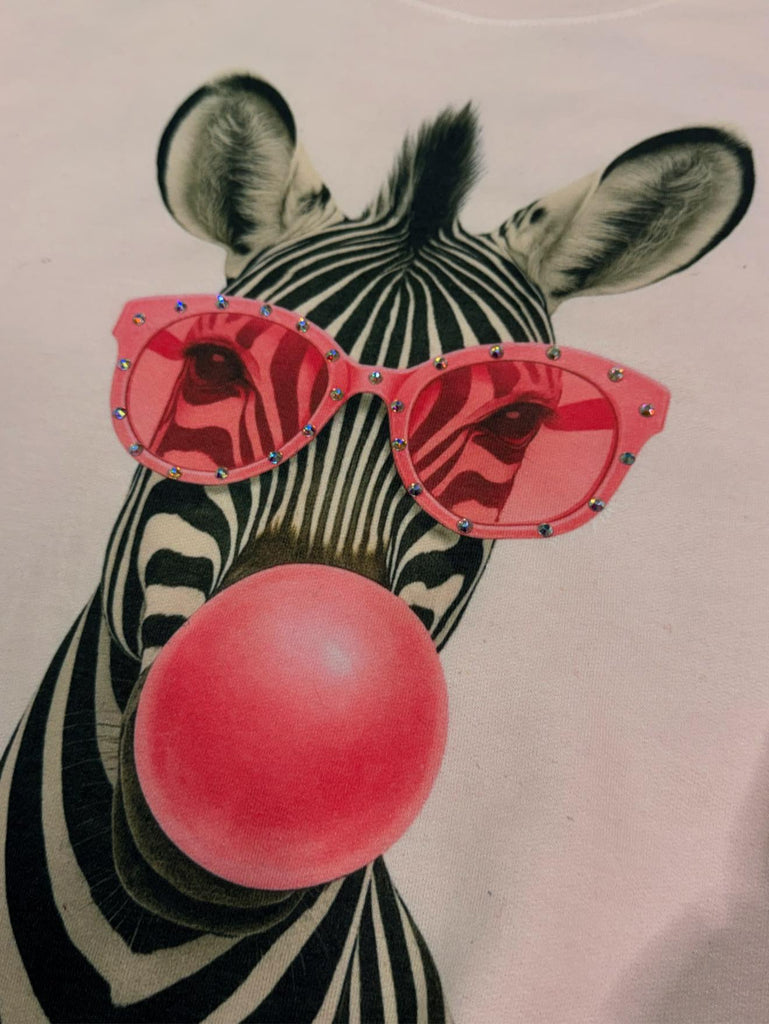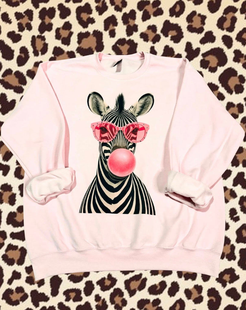 Meet the Bubblegum Safari Sweatshirt — the cutest dose of wild + whimsy your closet has ever seen. Featuring a fabulous zebra rocking pink glamour sunglasses and blowing a perfect bubblegum bubble, this sweatshirt is pure personality and cozy charm.