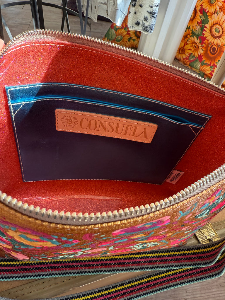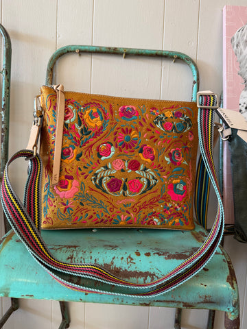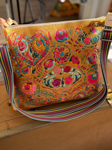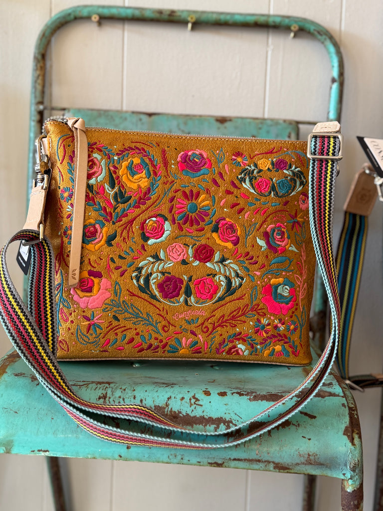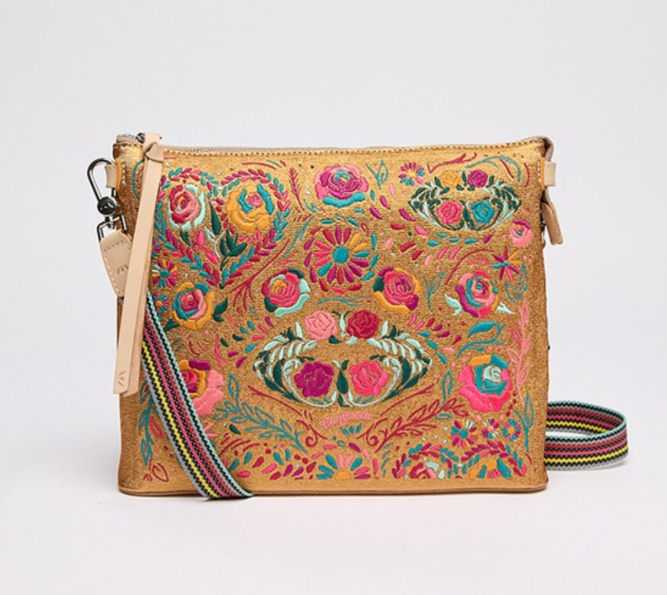 This embroidered crossbody bag is ready to take on the day with an adjustable strap and two interior pockets. Crafted with a roomy open interior, the Downtown Crossbody can carry the essentials and more.