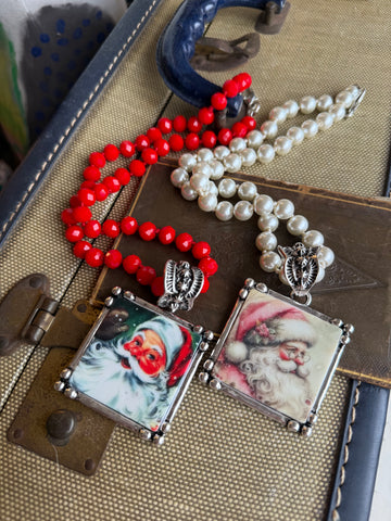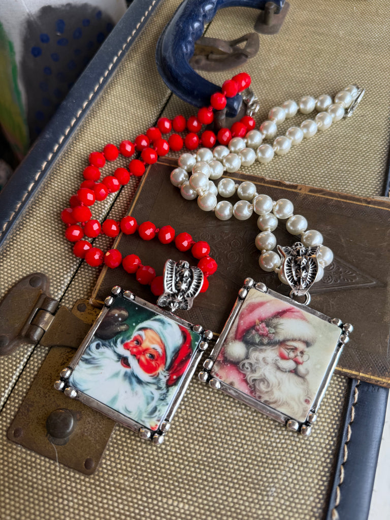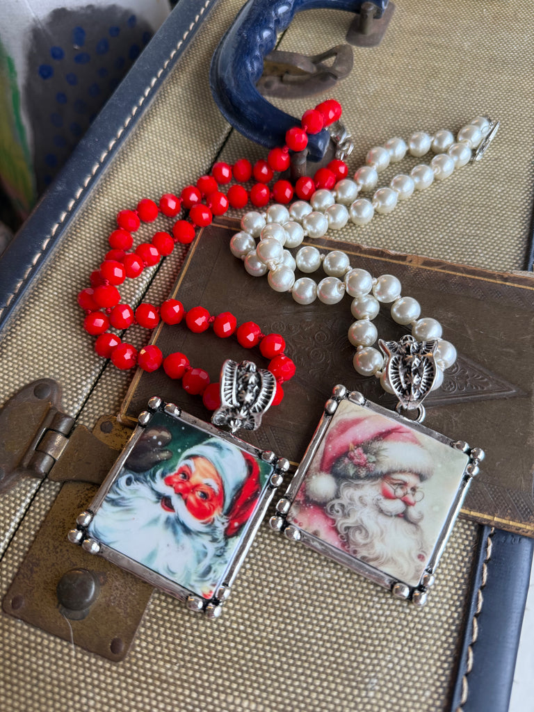 Bring a touch of vintage Christmas magic to your holiday style with our Holiday Heirloom Santa Necklaces. Each necklace features a charming, old-world Santa portrait set inside an ornate antique-gold frame, creating a look that feels nostalgic, whimsical, and full of festive cheer.