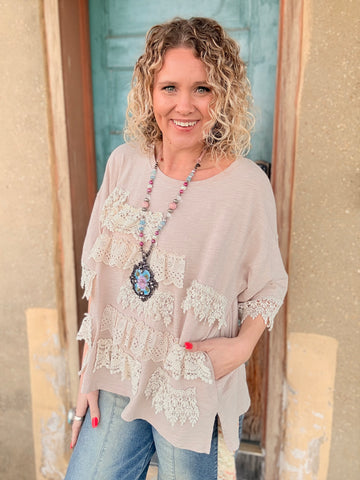 Soft, romantic, and effortlessly feminine — the Lace Layers Oversized Cotton Tee blends everyday comfort with dreamy vintage charm. Crafted from breathable cotton in a relaxed, oversized silhouette, this piece features beautiful layered lace and eyelet ruffle panels across the front and sleeves for texture, movement, and a touch of shabby-chic magic.