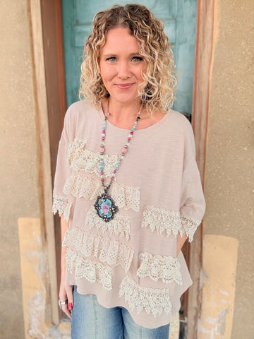 Easy to style and endlessly wearable, this tee pairs perfectly with denim, linen, skirts, or layered under your favorite duster for that signature Poetry Tea boho-romantic look.
