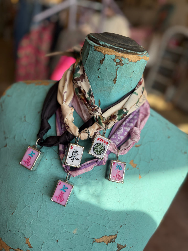 Every tile is different and every scarf has its own personality, making each necklace truly one-of-a-kind. Whether you love bold colors, classic symbols, or playful patterns, there’s a style that speaks to every Mahjong girlie.