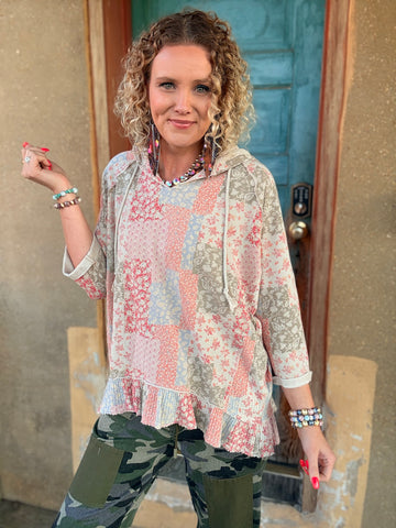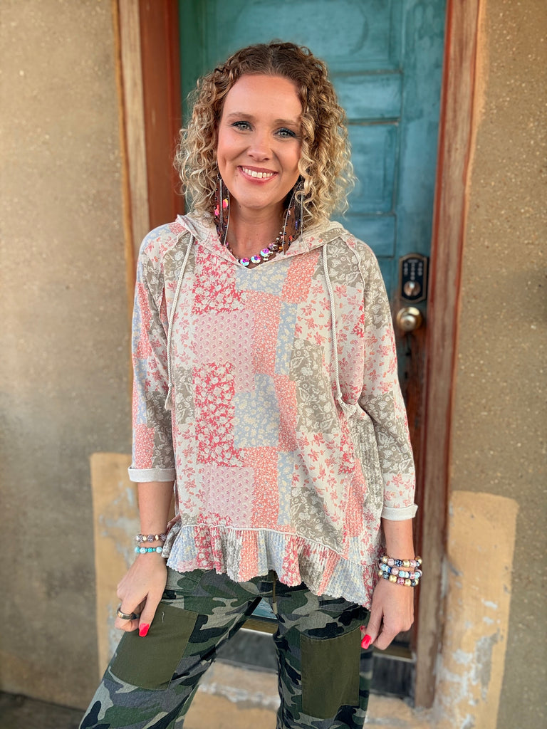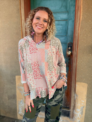 Soft, dreamy, and full of charm — the Patchwork Daydream Hoodie blends cozy comfort with boho style. Designed with a beautiful mix of vintage-inspired floral patchwork prints in soft blush, dusty blue, and warm neutrals, this lightweight hoodie feels both relaxed and effortlessly unique.
