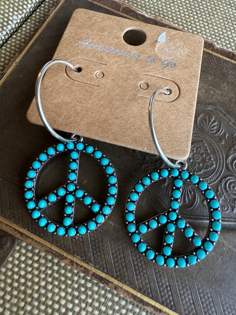 Meet the Turquoise Peace Hoop Earrings — the sweetest dose of boho charm for your everyday style. These lightweight hoops feature dangling turquoise peace signs, adding that perfect mix of whimsy, retro-cool, and Southwestern flair.