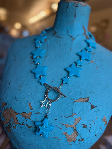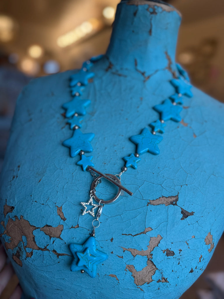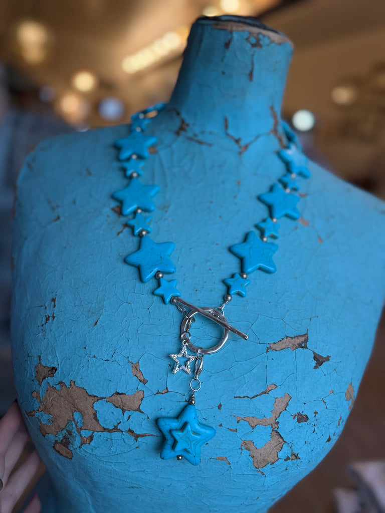 Pure turquoise dreams. This long lariat is covered in dyed turquoise howlite stars for a western-bohemian vibe that’s equal parts statement and staple. Perfect solo or layered with your favorite pendants.